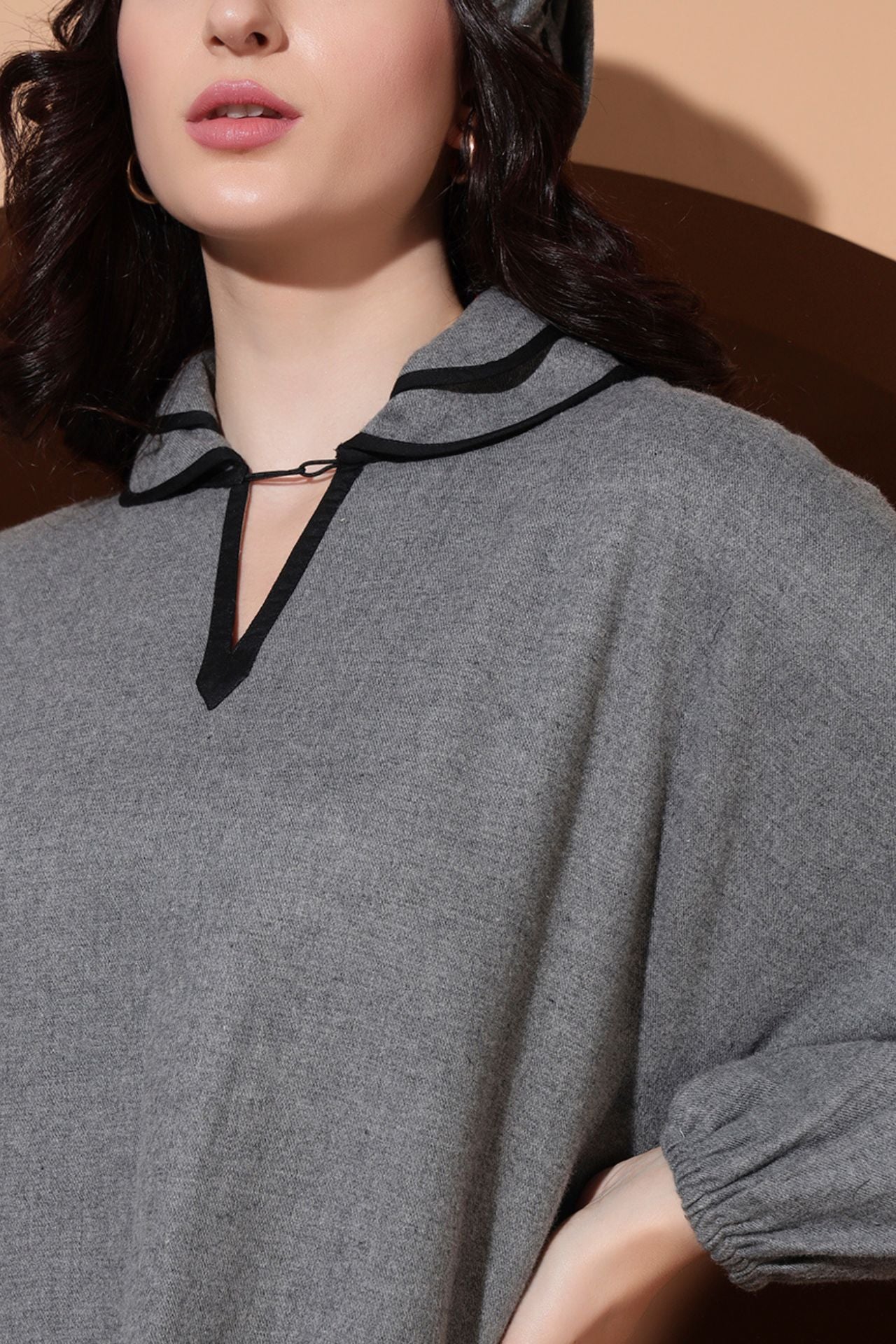 - Front-open long designer top with double-collar detailing